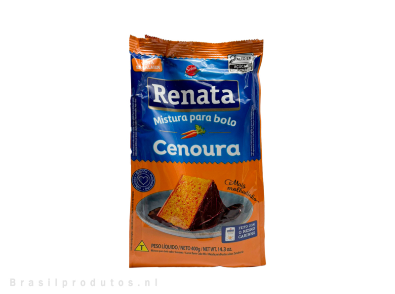 Renata Cake Mix wortel 400gINGREDIËNTENTarwebloem verrijkt met ijzer en foliumzuur, suiker, cacaopoeder, zetmeel (Bacillus thuringiensis en/of Streptomyces en/of Agrobacterium tumefaciens en/of Zea mays), plantaardig vet, gecondenseerde melkpoeder, zout,…